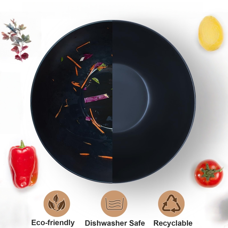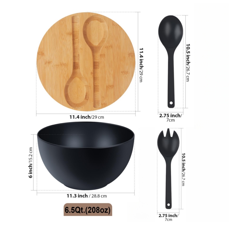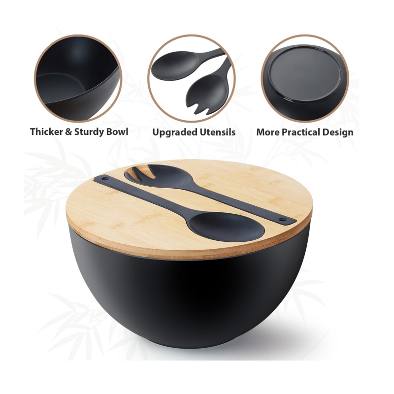 Crafted from high-quality melamine, this salad bowl set with lid and servers offers both style and functionality. Its sleek and modern design ensures that it complements any kitchen, dining room, or living space. Lightweight yet durable, this salad set is easy to handle and clean, making it an ideal choice for busy households.