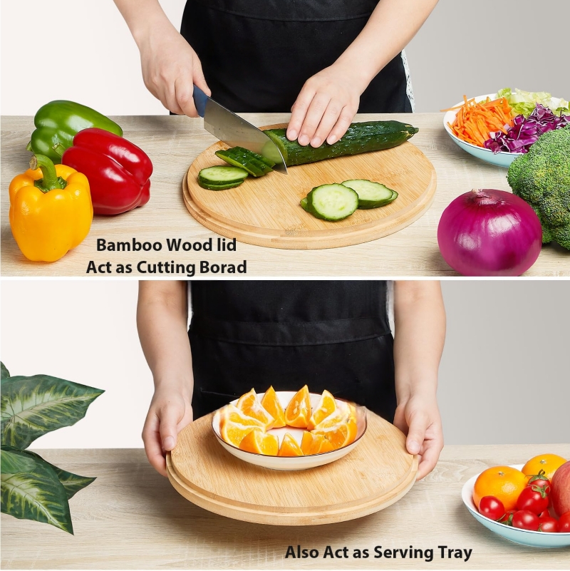 4. Reversible 2-in-1 Lid: Cutting board + serving platter + storage