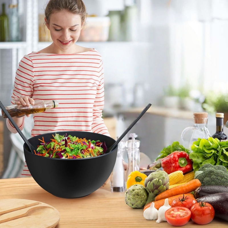 Crafted from high-quality melamine, this salad bowl set with lid and servers offers both style and functionality. Its sleek and modern design ensures that it complements any kitchen, dining room, or living space. Lightweight yet durable, this salad set is easy to handle and clean, making it an ideal choice for busy households.