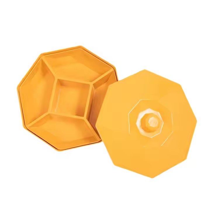 Designed with convenience and style in mind, this contemporary snack storage box features five compartments for neatly organizing dry fruits, nuts, candies, and other treats. Made from durable melamine, it’s easy to clean and ensures long-lasting use, making it the perfect addition to your kitchen or living room.